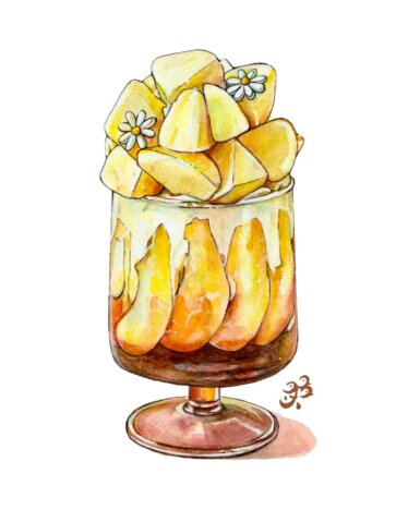 FUKUNAGA901様(@fukunaga294 )にご依頼いただき、パフェの店頭ポップ用イラスト2点を制作しました。洋梨のパフェカラメルに浸かった洋梨の色を描くのが楽しかったです。レインボーキウイパフェ飴のツヤツヤ感とキウイの瑞々しさを意識しました。ツヤツヤさせるの楽しい🌟今回もサイズはA5、画材は水彩絵の具と色鉛筆です。ガラスの透明感と質感を出すことがご希望でしたので意識して描きました。今回もご依頼ありがとうございました!